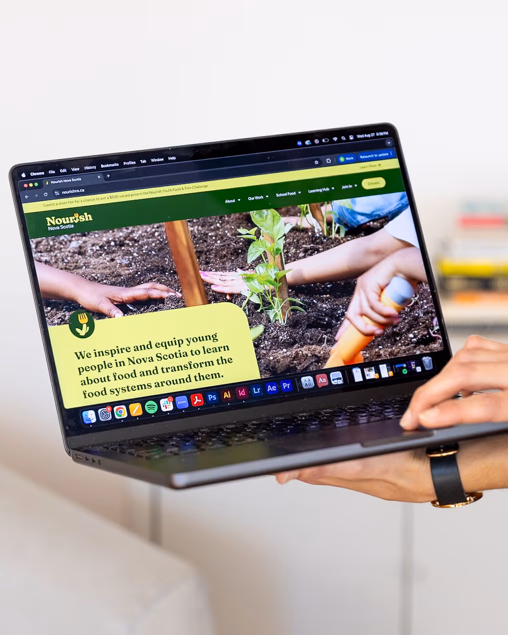 Firstly, we worked with the Nourish Nova Scotia team on a strategy and research phase. We developed a comprehensive Communications Strategy and refreshed Message Guide. In the strategy phase, we clarified the organization’s communications objectives, pinpointed target audiences, and helped shape the core messages and brand positioning that would speak to young people, educators, and community partners. Our goal was to strengthen Nourish Nova Scotia’s communications strategy and messaging — so that they could clearly communicate the impact they make in Nova Scotia, particularly related to systems change.
