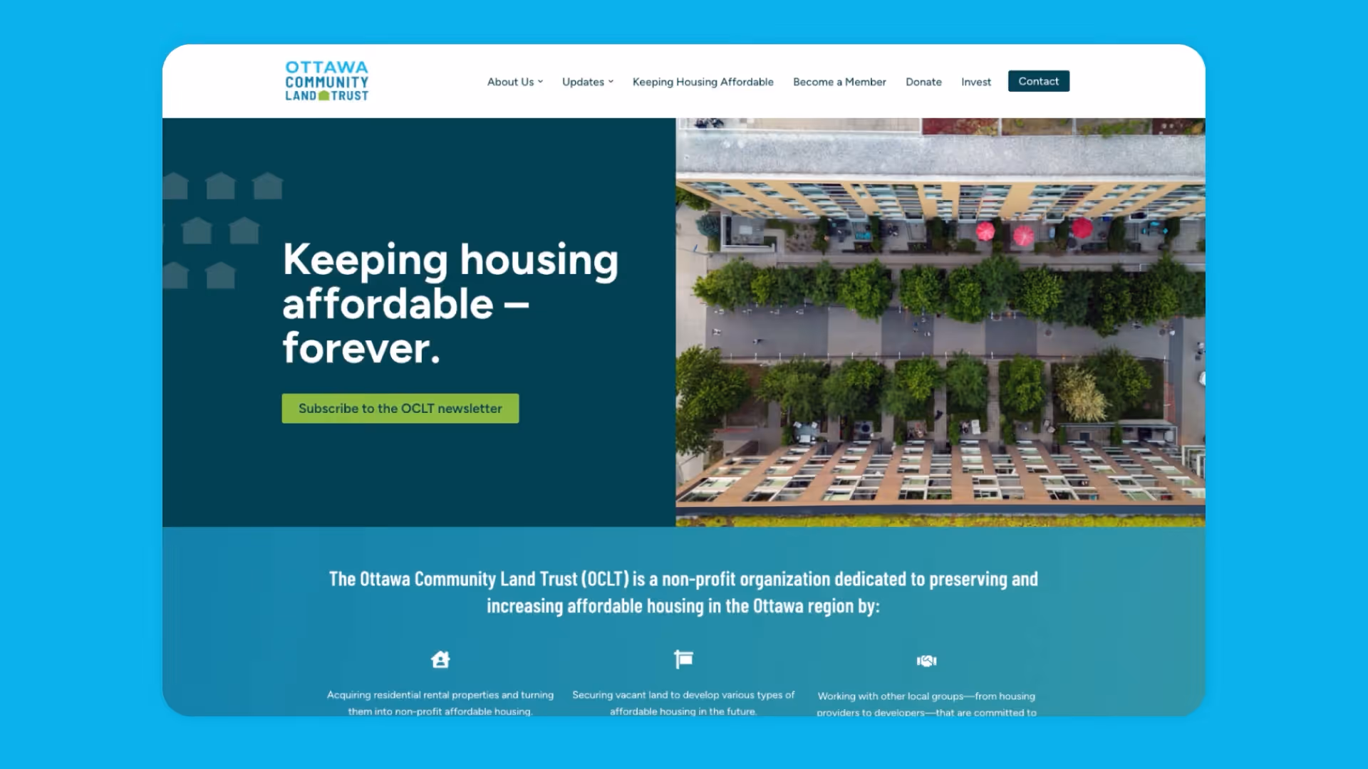 As a new organization, the land trust worked with us to build a stronger foundation in communications at an important moment in their trajectory. We supported OCLT as they collaborated with Tapestry Community Capital in raising $3,000,000 in bonds to support their work protecting affordable housing — like the first two residential buildings they bought in Ottawa.