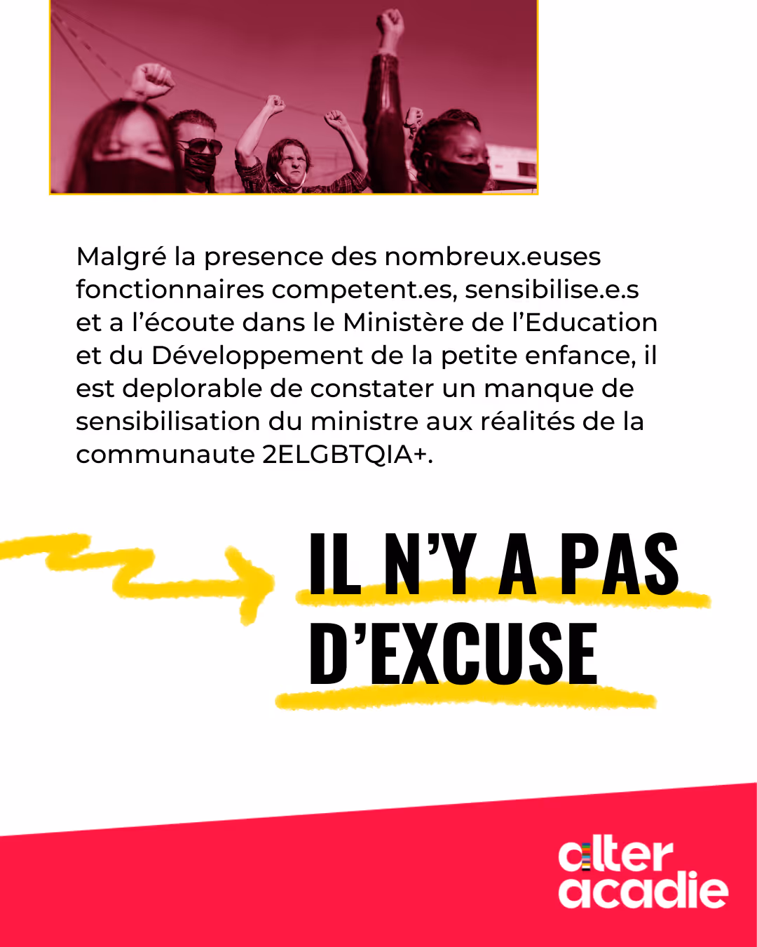 For some background context for anyone unfamiliar: Acadians are the French Canadian community that arrived as settlers on Canada’s east coast; were deported by the British government; and are a community with a complex but resilient story. Alter Acadie was founded to be the provincial voice for queer Acadians in New Brunswick, which, until the organization’s founding in 2023, did not previously have a body to represent them and advocate for their needs.