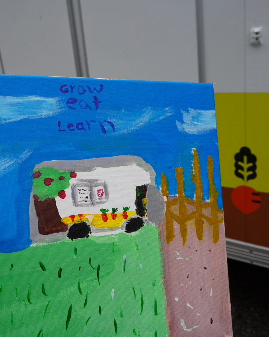 This painting of the Grow Eat Learn trailer was created by a youth program participant (and budding young artist).